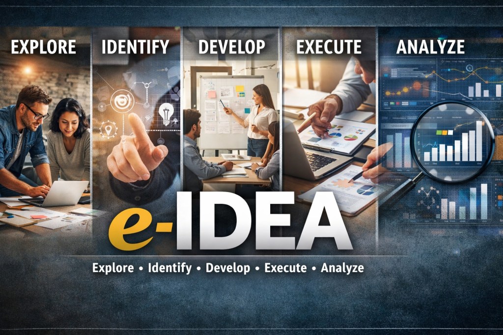 e-IDEA stood for Explore, Identify, Develop, Execute, Analyze.