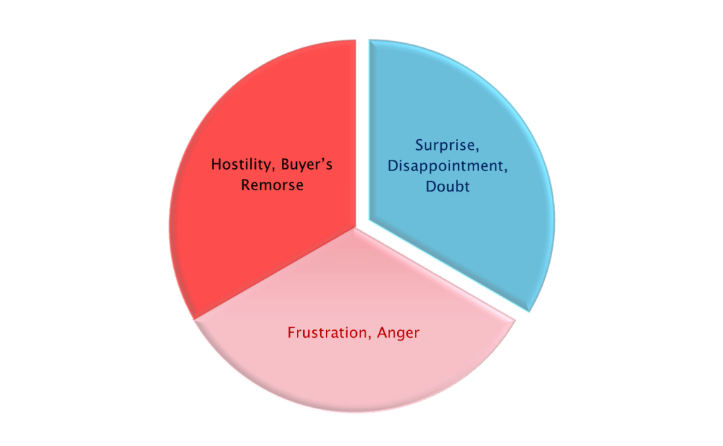 The journey continues into the pink zone. Emotions start to run high. Frustration and anger set in. Before you know it, the situation slides into the red zone. Tempers flare and buyer’s remorse sets in.