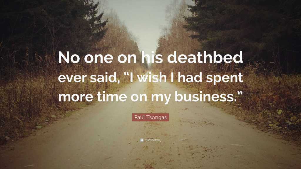 “No one on his deathbed ever said, I wish I had spent more time on my business.” – Paul Tsongas