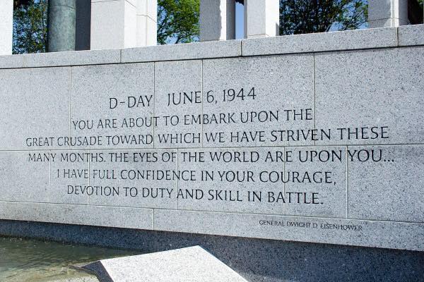“The eyes of the world are upon you. The hope and prayers of liberty-loving people everywhere march with you. In company with our brave Allies and brothers-in-arms on other fronts, you will bring about the destruction of the German war machine, the elimination of Nazi tyranny over the oppressed peoples of Europe, and security for ourselves in a free world.
